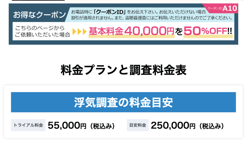 HPに記載されている浮気調査の料金について、こちらで簡単にまとめました。